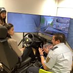 - Fahrsimulator: Hier wurde es technisch. Während die Schülerinnen versuchten, eine virtuelle Strecke zu bewältigen, sorgten die Polizeibeamten gezielt für Ablenkung. Einmal nüchtern, einmal mit simulierten 1,1 Promille. Die Folge? Übersehene Schilder und heftige Crashs.