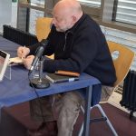 Die Schülerinnen und Schüler lauschten über eineinhalb Stunden aufmerksam den Ausführungen des Autors und nutzen ausgiebig die seltene Gelegenheit, mit dem Autor einer ihrer Pflichtlektüren in den Austausch zu kommen. Wer wollte, konnte sich nach der Lesung und dem Gespräch noch eine persönliche Widmung in den Roman schreiben lassen.